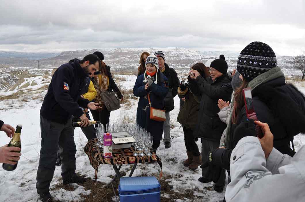 You will be picked up from your hotel just before sunrise on Cappadocia Valleys. Have some complimentary snacks before you ride in the balloon. After casual safety checkings you are ready to fly. Your flight time will be approximately an hour and you will have wonderful time by viewing the amazing landscape, colorful valleys, vineyards. It is also the best way to picturize the region. After spending an hour on air you will land on to click your champagne and get certificates. Pick up and drop off your hotel is included.