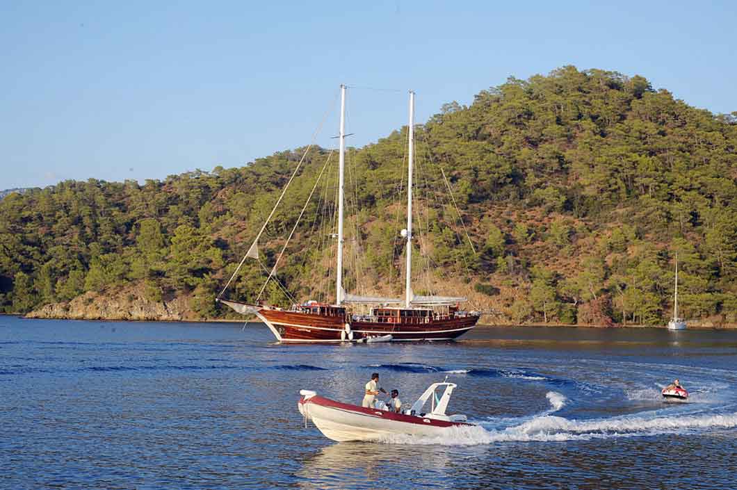 Because of the wavy seas of Disibilmez and Kurtoglu capes that we have to cross, we will cruise earlier than the other days and reach the world-famous Gocek Gulf. We will anchor at Tersane Island for breakfast and swimming break. This naturally protected harbour was used as the shipyard in Byzantine and Ottoman times. We will cruise to Manastir (Monastery) Bay. This place is also known as Cleopatra Bay or Sunken Bath Bay due to the beautiful underwater ruins of an old bath. Dinner and overnight stay at Kizil Island.