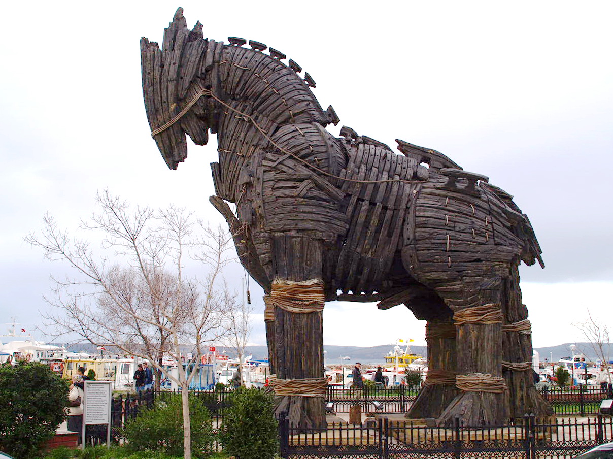 During the Trojan War, Greeks used a large, man-made wooden horse to enter the legendary city of Troy. Inside sat elite fighters who waited until night before creeping out and opening the gates to let the rest of their army in.